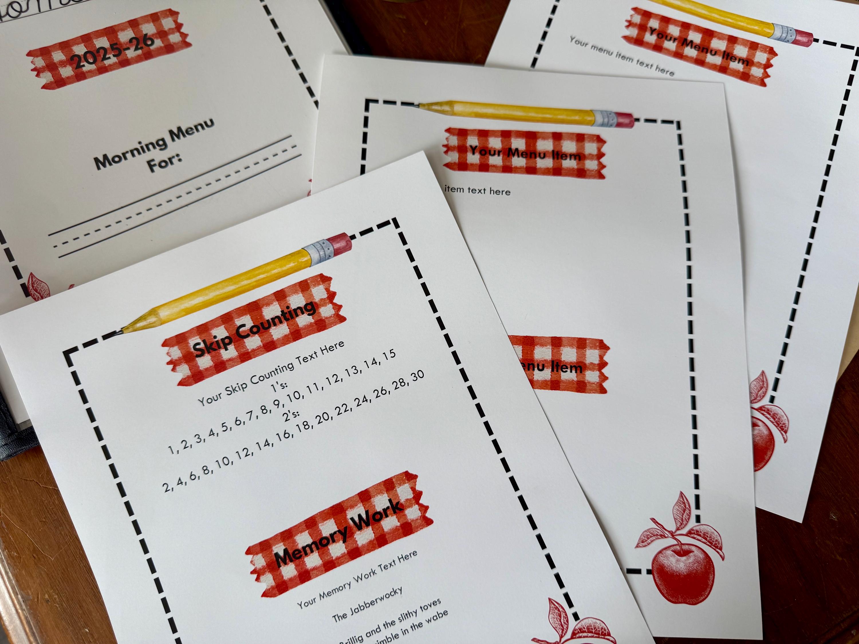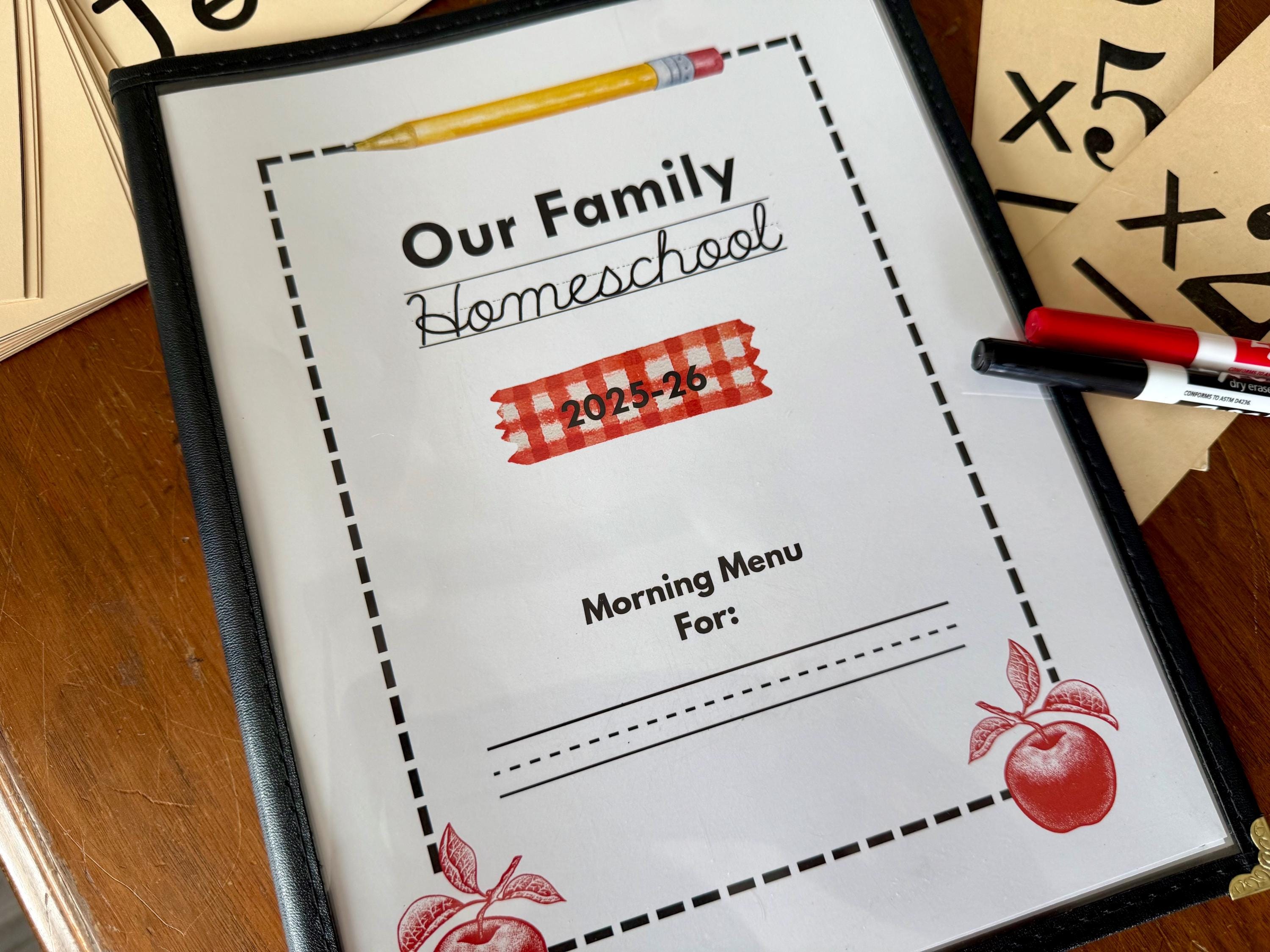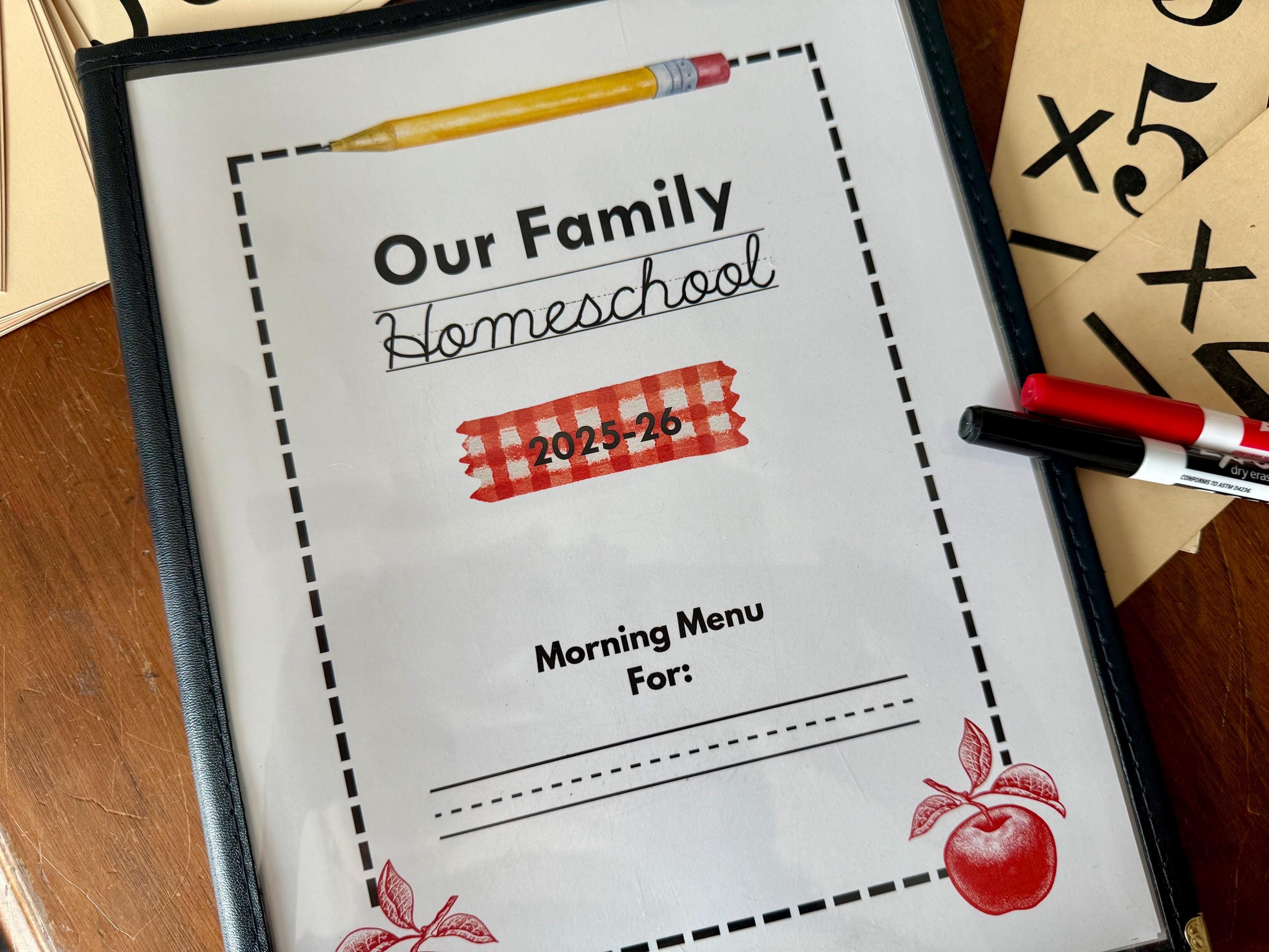 Get your homeschool day started beautifully with our wholesome Morning Menu. Easy-to-edit pages let you customize, print, and organize your Morning Time activities. Slip into your empty restaurant menu or binder sleeves, grab some dry erase markers, and enjoy a precious and rich morning meeting with your sweet ones!