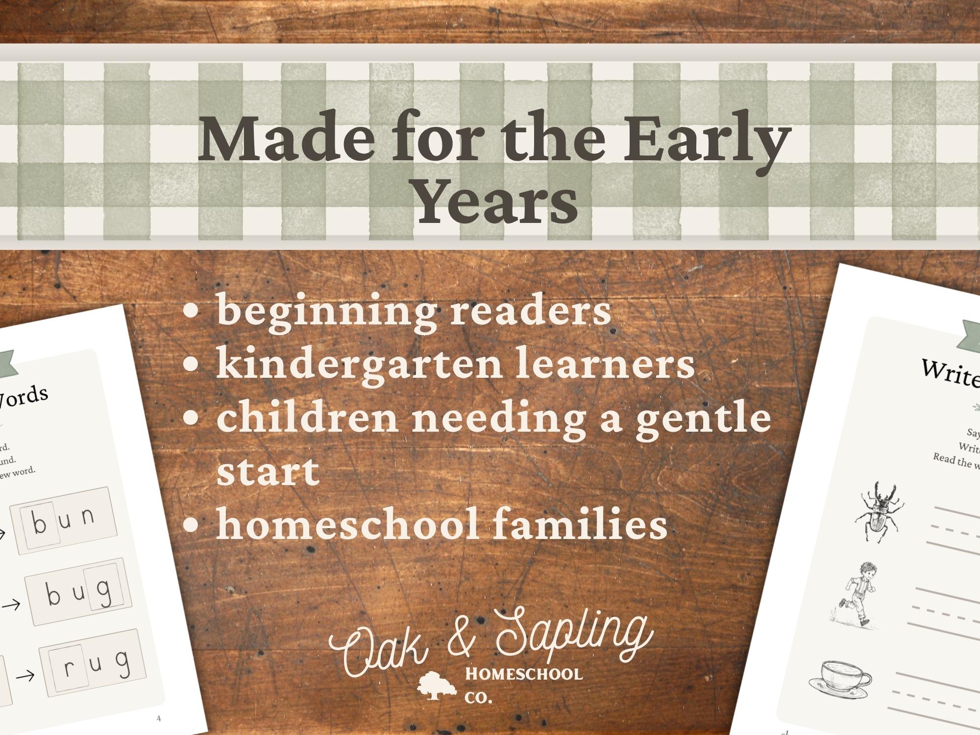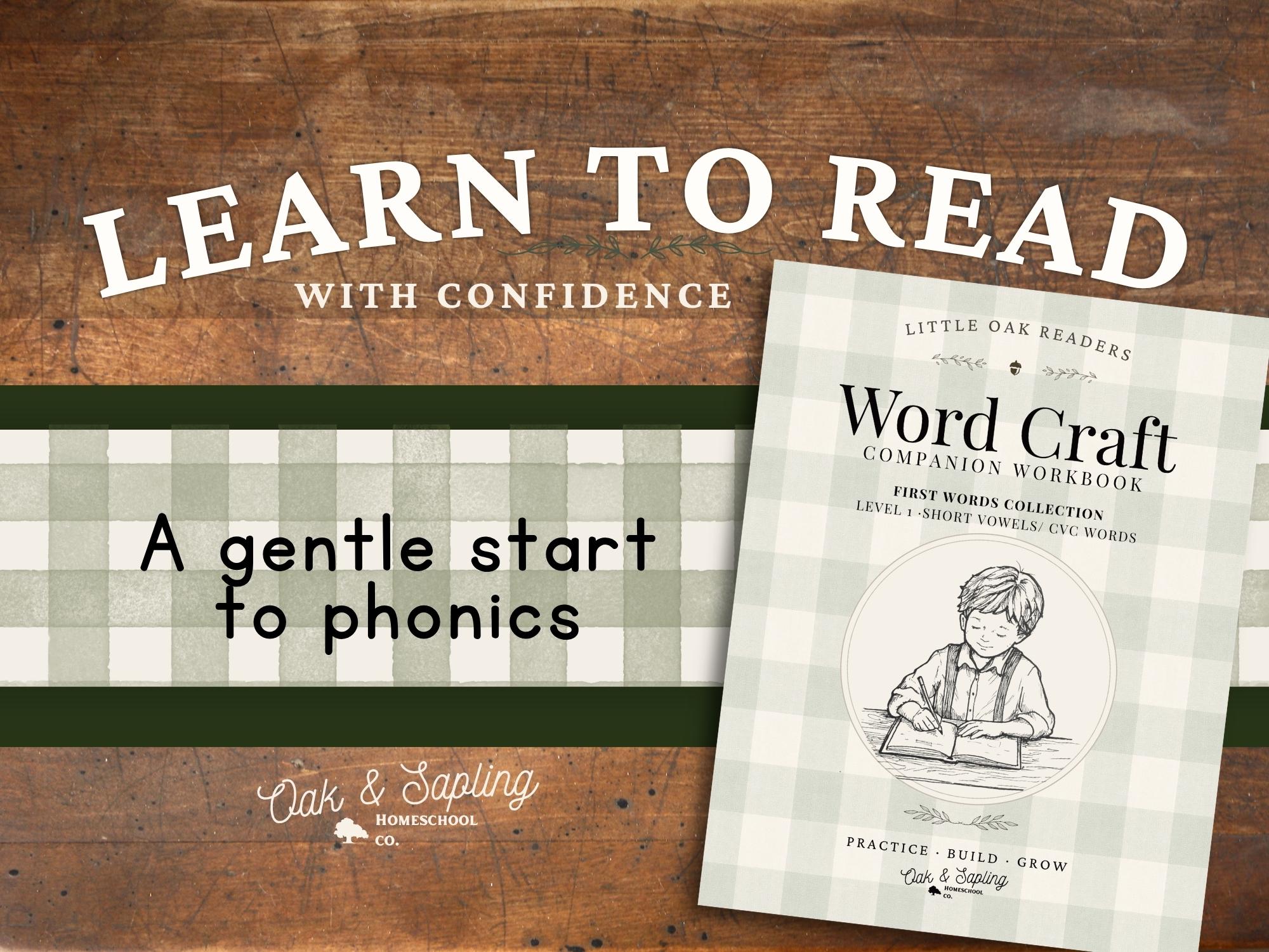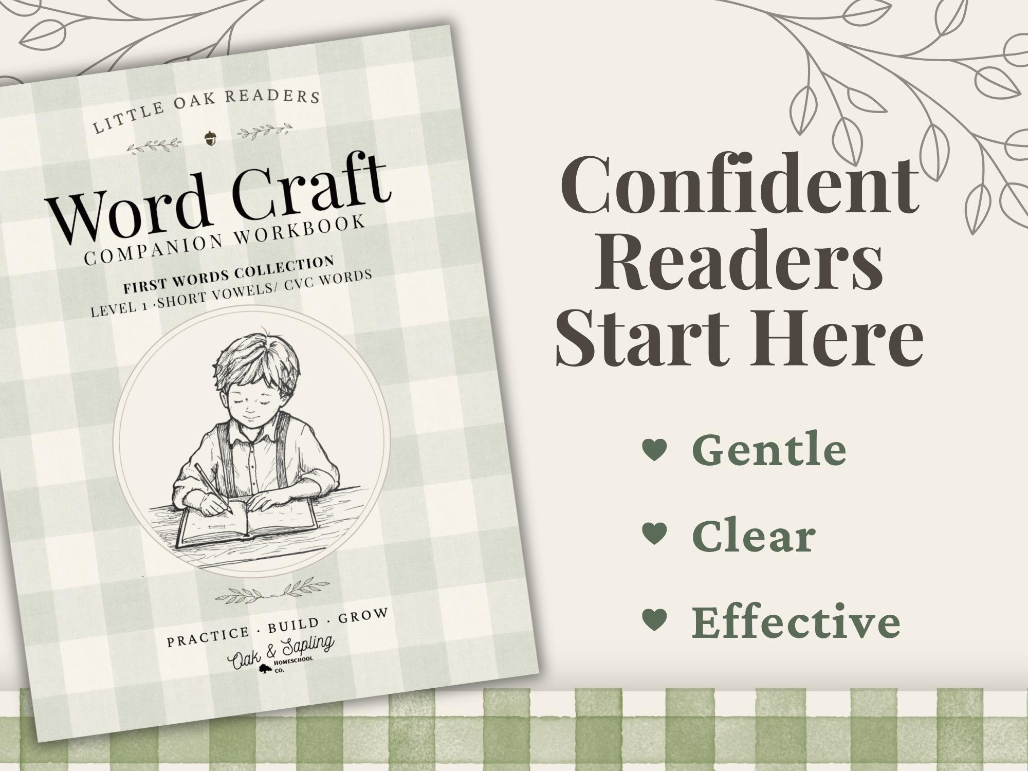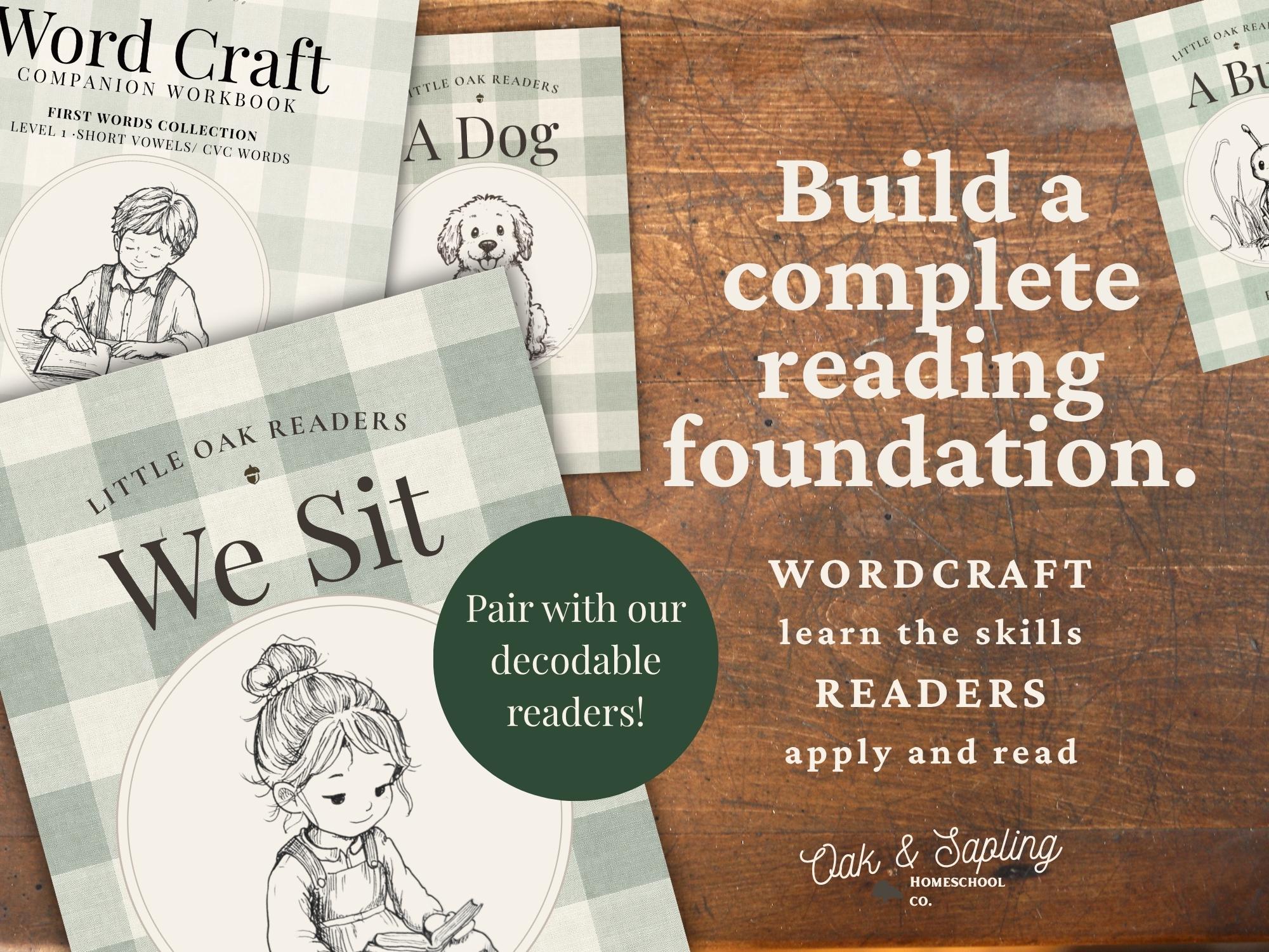 Oak & Sapling's Wordcraft Companion was carefully designed to gently guide your child through the process of building, blending, and reading simple CVC words. Short, focused lessons leave your little learner feeling confident as they master simple words without frustration. Created to reflect the process in which most children learn to read, Wordcraft Companion is Science of Reading aligned and crafted to lead your child to phonics mastery, beautifully, step-by-step!
