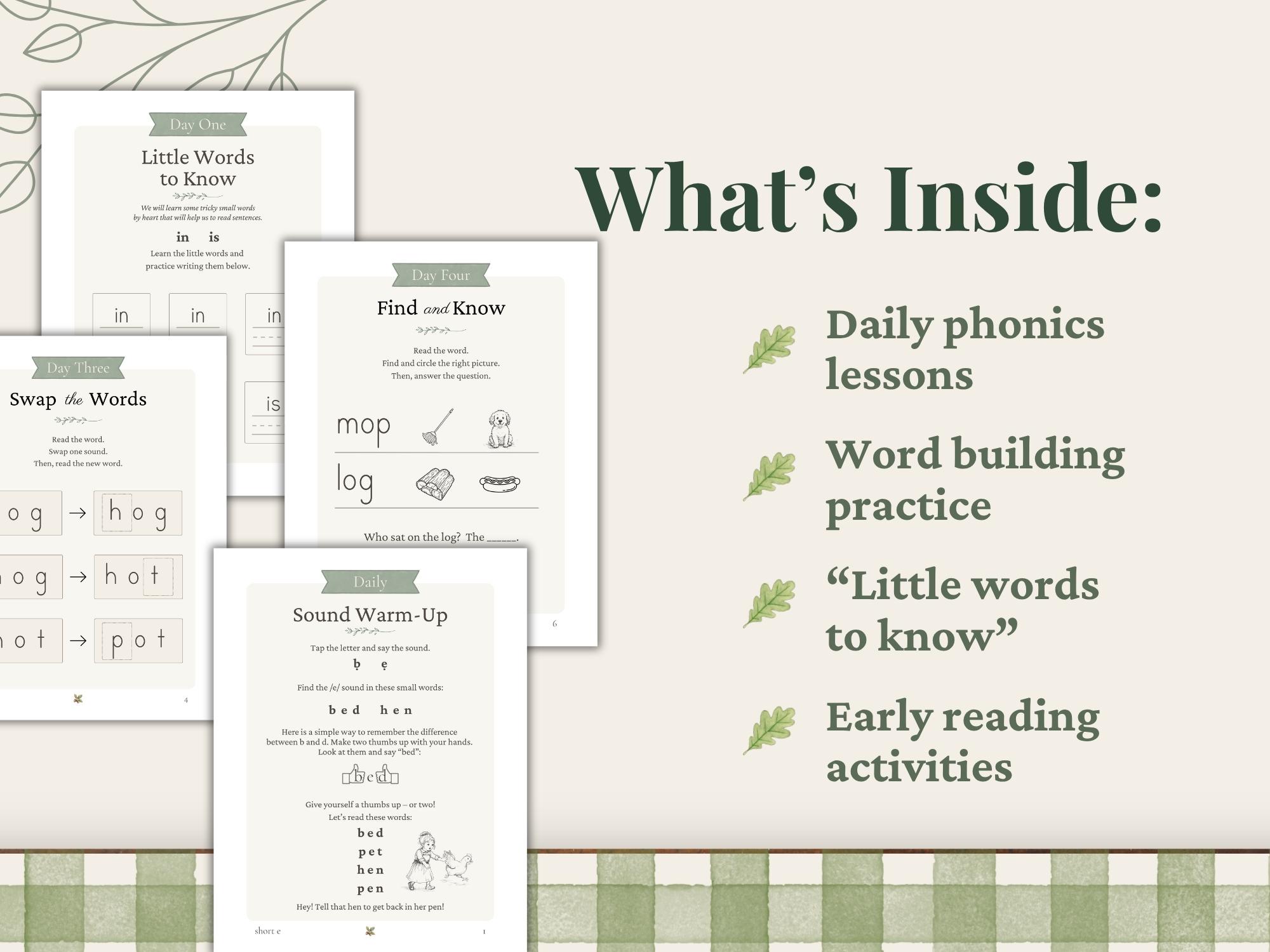 ✏️NOTE: For the full Reading Experience, pair this workbook with Little Oak Readers Level 1 Decodable Readers set (available in the Level 1 bundle), or the Complete Level 1 Reading + Practice Pack Bundle.